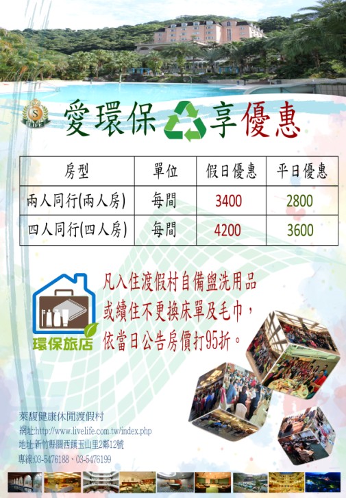 為響應愛地球要環保運動,萊馥渡假村推出,